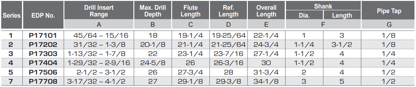1-1/4" Shank, Straight Flute, Extra Long Length Spade Drill Holder, 31/32" to 1-3/8" Insert Range, 2 Series